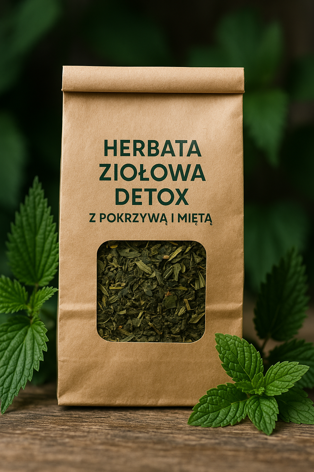 Herbata Ziołowa Detox to naturalna kompozycja ziół wspierających oczyszczanie organizmu i dobre samopoczucie. Pokrzywa, liść brzozy, koper włoski i mięta pieprzowa tworzą delikatny, ziołowy napar o świeżym aromacie i działaniu wspomagającym pracę układu trawiennego i moczowego. Idealna do picia codziennie – bez kofeiny i bez dodatków smakowych.